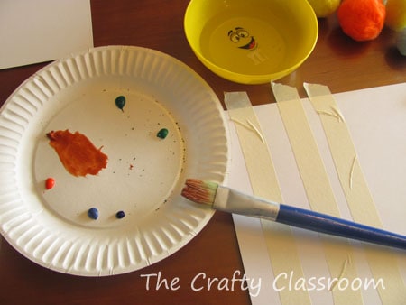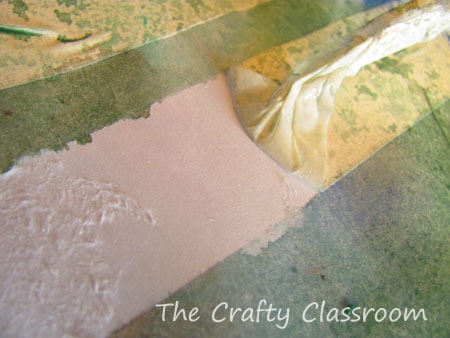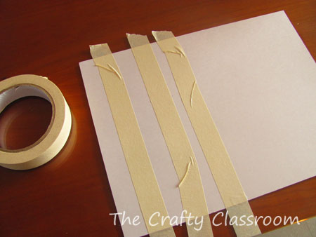 First I taped down three strips of masking tape across the paper.