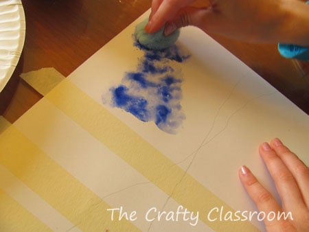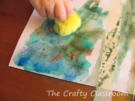 Then I got out the watercolors a flat paintbrush, and puff balls!