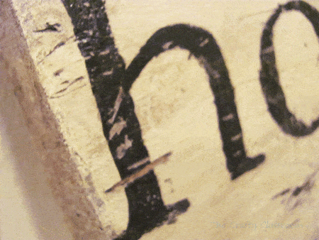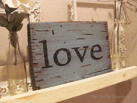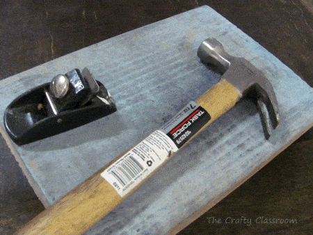 7. Shabby your board up a bit. Use sandpaper to rough up your word. Hammer in some dents. Rough up the edges…ect.