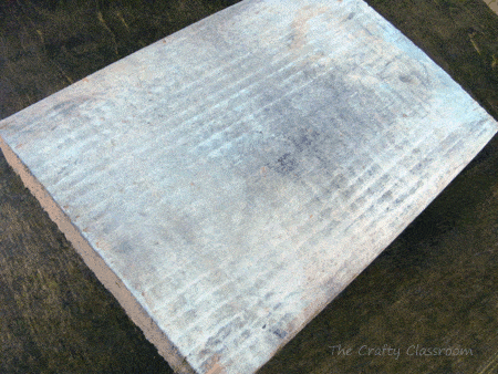 3. Paint your background color on your board. Use a lighter color paint, as we will darken it up a bit a little later. (Sissy’s signs were painted white and light blue to begin with.) TIP: While you’re at Home Depot, check their paint department for the “Mess Ups” rack. I often find a small tub of paint for 50 cents!